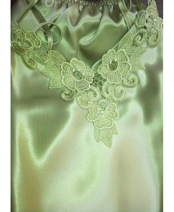 Ефирна,сатенена дамска нощница,с макраме дантела на деколтето и в долната предна част.Състав:100%ПолиестерАко ви трябва цвят който го няма в посочените направете запитване.